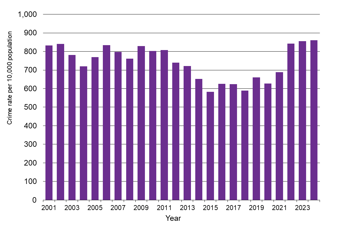 Update details: Annual calendar year victimisation data are reported to 2024, with 2025 results and corresponding population estimate available in early 2026.