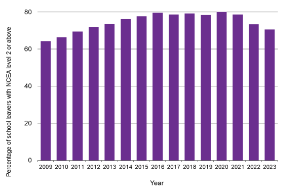 | Year | Percentage of school leavers with NCEA Level 2 or above |
