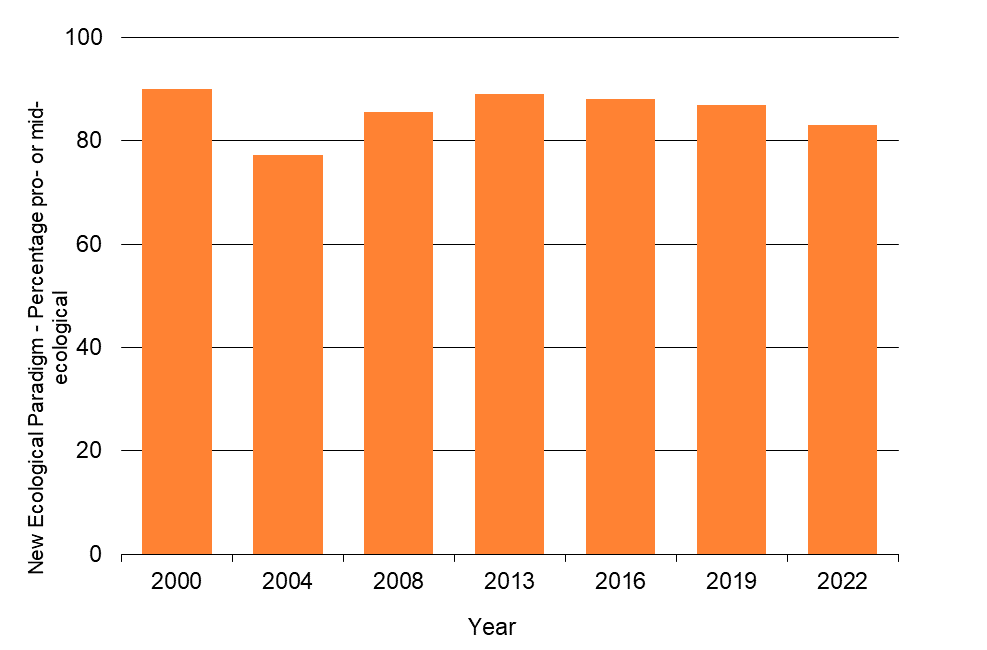 | Year | New Ecological Paradigm - percentage pro- or mid-ecological |