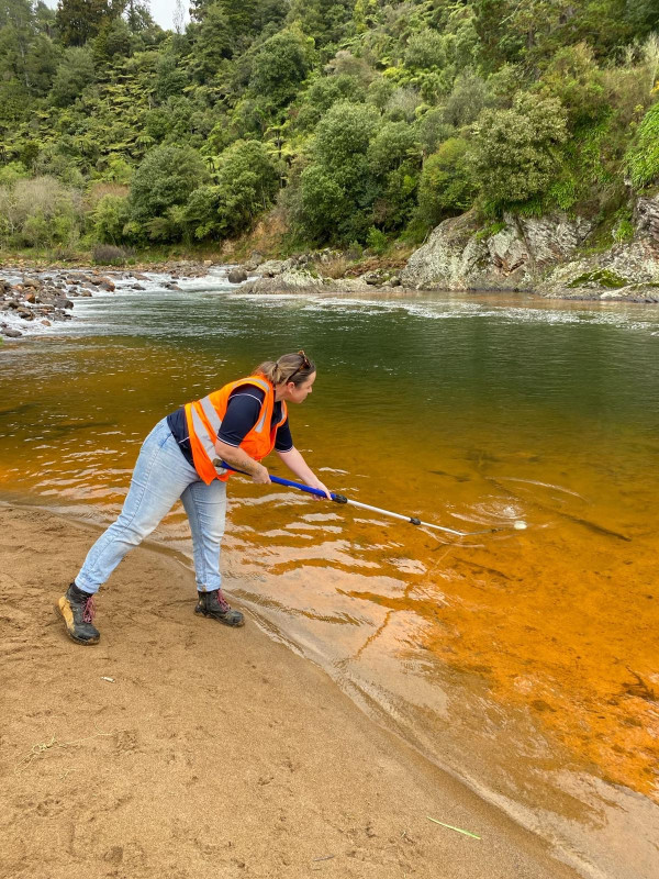 Regional Compliance Manager Patrick Lynch says the sediment appears to have been shifted from an old mining asset in the hills above the Karangahake Gorge car park, and the flow of water coming from the shaft was now running relatively clear.