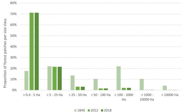 - per cent of indigenous forest fragments that are less than 25 ha (small fragments)