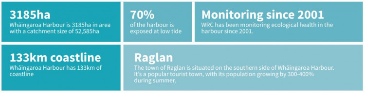 Waikato Regional Council monitors a number of sites in Whāingaroa (Raglan), including its harbour and open coast beach during the summer months (November to March), to assess the suitability of water quality for recreational activities, estuarine water quality, ecological health and sediment contamination.