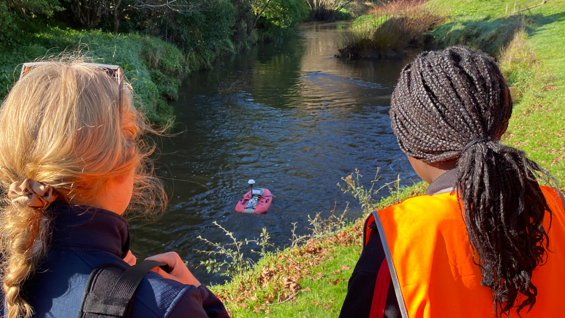 One day last April, Jessie and Loren were busy measuring the flow rate of the Mangaokewa Stream in Te Kūiti, when local Tama Blackburn and his 11-year-old son Epiha were walking past and wondered what was going on.